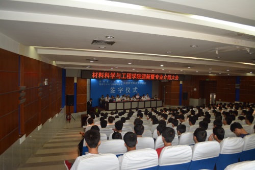 9月5日下午,材料学院2014级迎新暨专业介绍大会在图书馆二楼国际报告厅举行。材料学院领导班子、有副高级职称老师、各系负责人等19名老师代表和291名新生参加了大会。会上,材料学院院长杜慧玲老师讲了话,她对2014级新生的到来表示热烈的欢迎,对学生和家长能够选择材料学院表示感谢,并从学会做人、学会做事、学会做学问、学会与人相处等几个方面对2014级新生提出了殷切希望,老生代表和新生代表分别作了发言,随后各专业的负责老师分专业为新生同学们做了专业介绍。