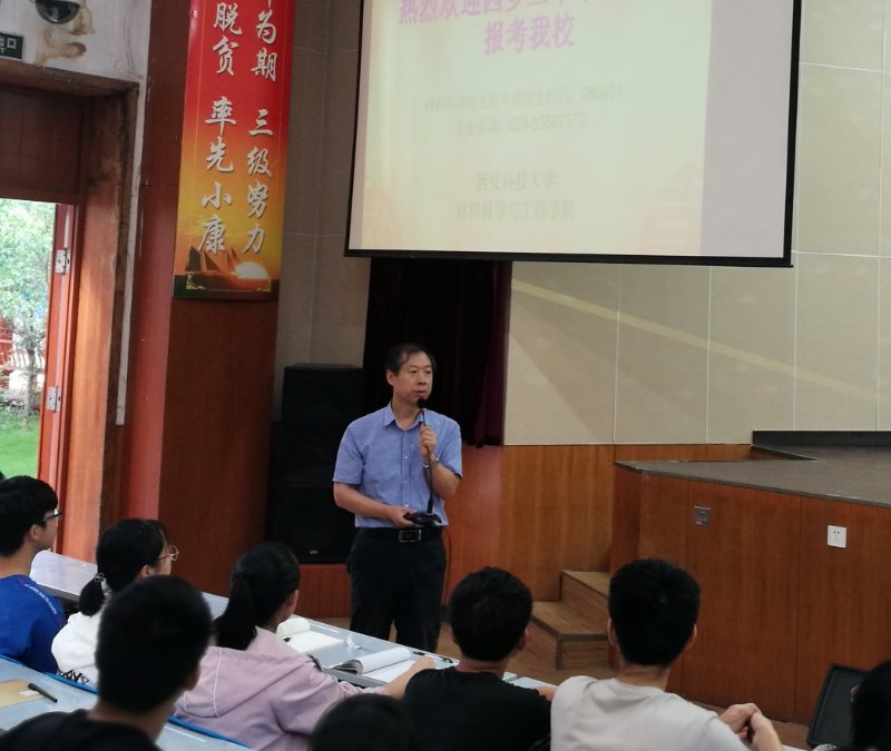 6月16日材料学院副院长朱明,刘向春教授,孙万昌教授,邓军平副教授一行赴汉中市西乡二中开展招生宣传。孙万昌教授为西乡二中学生做了题为“走近材料科学”的科普讲座,他结合专业特色,从社会、经济、科技发展等多个方面,介绍了材料对于社会进步的重大意义,也向全体同学宣讲如何选大学、选专业、WilliamHill中文官方网站人才培养优势及近年就业发展状况等内容。材料学院2016级西乡二中毕业生邓芳分享了丰富多彩的大学生活,同时也介绍了她身边同学近年来考研升学的录取情况。