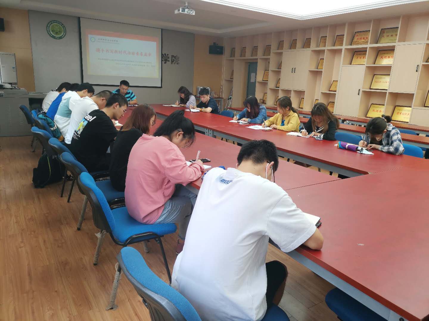 同学们认真学习,积极讨论。学院新一届的学生干部结合各自在学业上的规划和团学干部的工作职责,分享学习体会和心得感悟,大家深切感受到以习近平同志为核心的党中央对广大青年的亲切关怀,极大地振奋了大家的热情,鼓舞着大家的精神,进一步夯实了广大青年坚定跟党走、奋进新时代的决心和信念。大家从讲话中也深刻认识到自己肩负的重大责任和光荣使命,希望能够在今后的学习、工作中,志存高远、脚踏实地,勇于创新创造,矢志艰苦奋斗。
