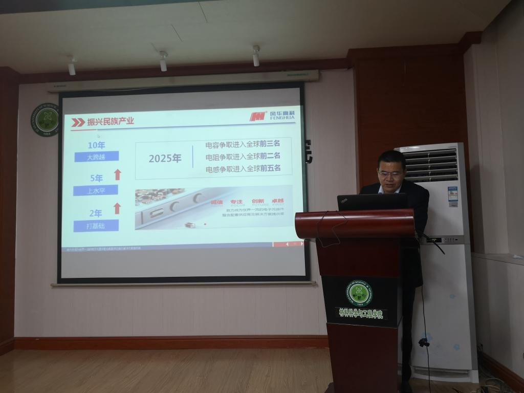 2020年10月15日,应杜慧玲院长邀请,广东风华高新科技股份有限公司风华研究院胡春元副院长一行来校进行专场校园招聘与产学研合作交流。材料学院党委副书记马婧智闻、副院长杨庆浩,学科骨干教师杜双明教授、刘向春教授、孙万昌教授等参加了座谈。
