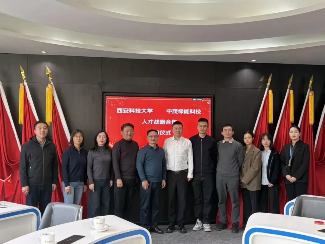 中茂绿能科技董事长兼总经理丁晔、中央研究院院长刘宇航,以及西安科技大学材料学院党委书记周涛、党委副书记李卫鹏、办公室主任袁伟、团委书记李浩、高分子系主任宿文燕、实验中心主任李宇翔、研究生辅导员夏瑾等双方代表共同出席本次签约仪式。双方围绕人才培养、科技创新与成果转化等核心议题,展开了全面且深入的交流探讨,积极探寻校企协同育人的全新机制与合作模式。
