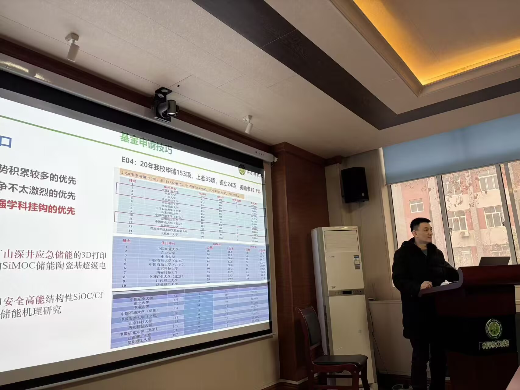 为扎实推进2026年度国家自然科学基金项目申报工作,充分调动学院教师申报积极性,切实提升项目申报质量,材料学院1月30日于4号楼209会议室组织召开了国家自然科学基金项目申报经验交流会。会议邀请化学与化工学院常鹏副教授、本院卢海副教授作专题分享,围绕基金申报策略、撰写要点与政策动态进行深入交流。会议由学院副院长杜立飞主持。