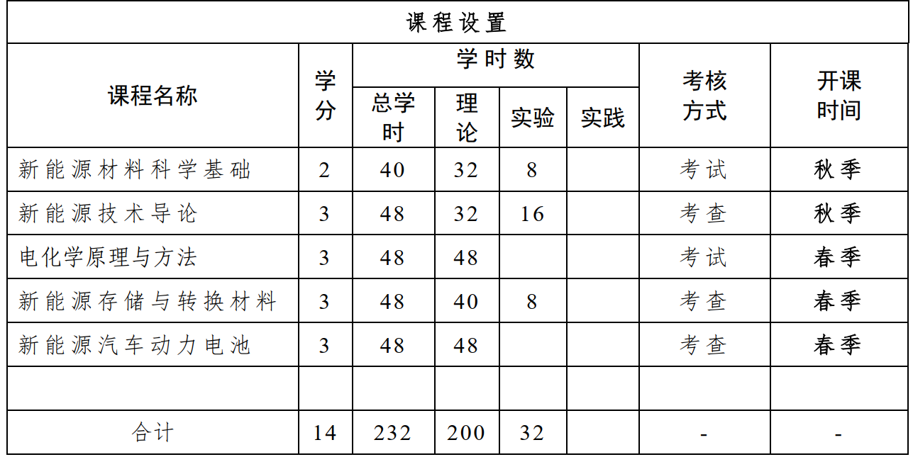本微专业所开设的核心课程注重理论联系实际,强调产教融合,立足校企联合人才培养,侧重以创新创业能力培养为导向。学生在完成相关课程的理论与实践教学环节学习后,不仅可以掌握基本理论知识,同时还获得实践锻炼,对新能源材料、技术以及能源转换和存储、电池设计及电池制造及关键工艺和设备等能够具有较为深刻的理解。
