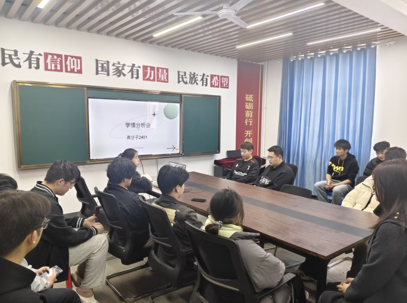 为全面复盘上学期教育教学成效,3月12日下午,材料学院在“一站式”学生社区召开学情学业分析会,会议围绕上学期考试成绩、学生心理健康、校园反诈防护及未来发展规划四大核心议题展开,会议由2024级辅导员高沛林老师主持,高分子2401全体学生参加。