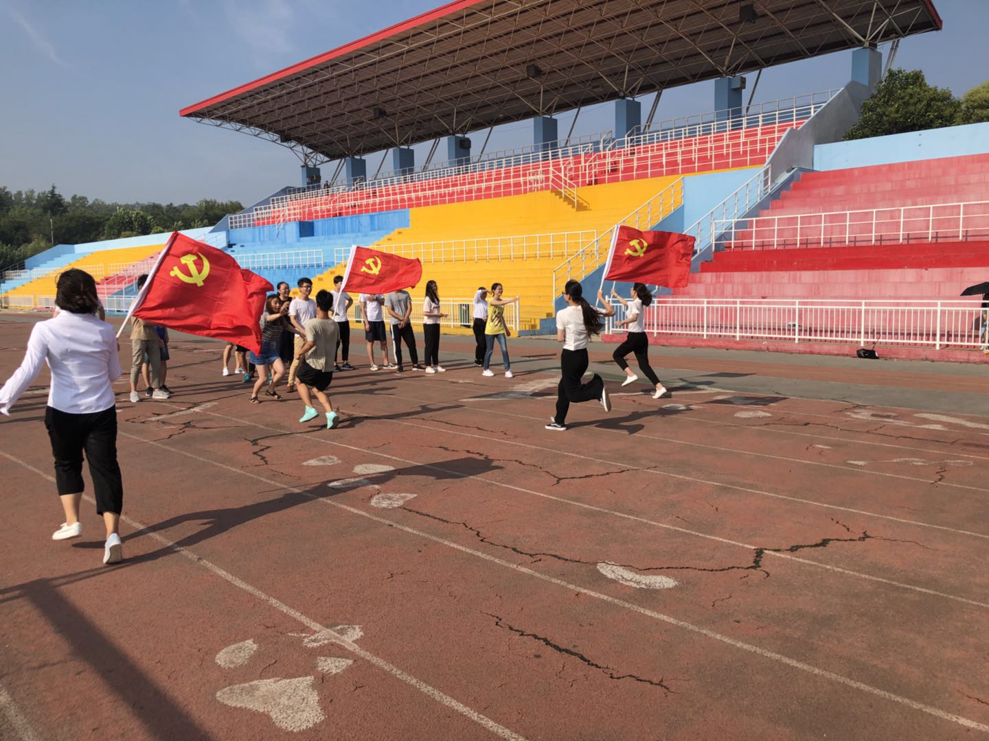 为庆祝中国共产党成立97周年,7月1日上午,材料学院学生党支部在临潼校区田径场举办第四届“精神传承、党旗接力”活动。在活动中,材料学院学生第一、第二党支部共64名党员分4个小组,党员们手持党旗在塑胶跑道上进行了100米接力传递赛跑。材料学院党员接力跑旨在传承“一个党员,一面旗帜,一个支部,一个堡垒”的精神,希望学生党员能够继承和发扬红色精神,传递新时代正能量,展现优良风采风貌,勤勉奋进,恪守纪律,争做一名合格的共产党员。
