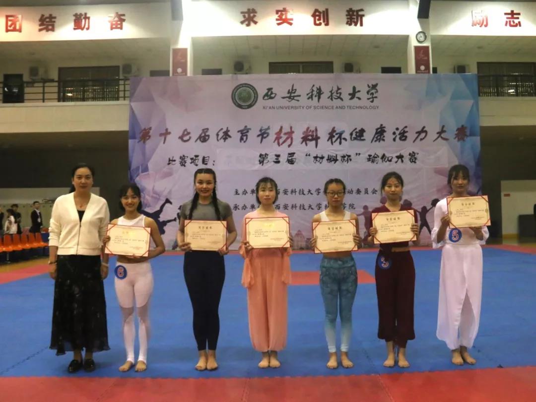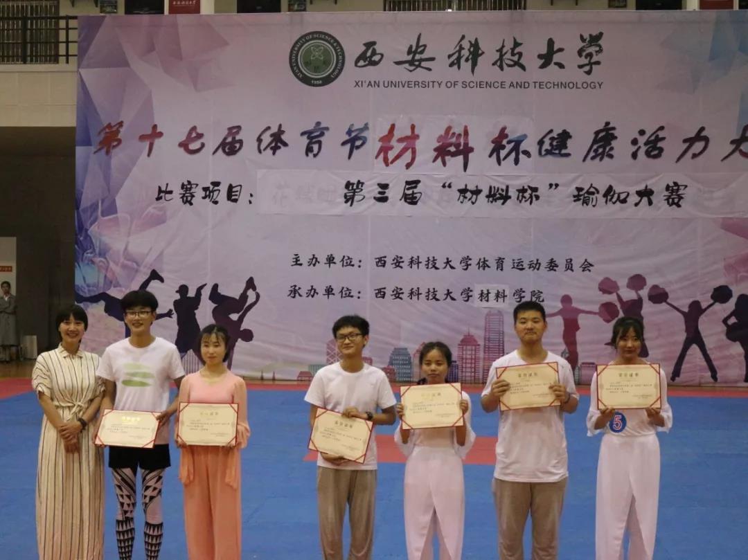 4月22日晚,西安科技大学第十七届体育节“材料杯”第三届瑜伽比赛于临潼校区骊山校园体育馆圆满落幕,本次赛事包括来自9个学院的瑜伽队,共有“团体赛、单人赛、双人赛”等三个项目。出席本次比赛的嘉宾有体育部党委书记吕宏艳,体育部主任陈俊杰,材料学院党委副书记马婧智闻,副院长朱明等。本次比赛评委特邀到岳海侠、李东颖、刘伟、王晓丽、张艳青、郑瑞娜、刘婷婷等。
