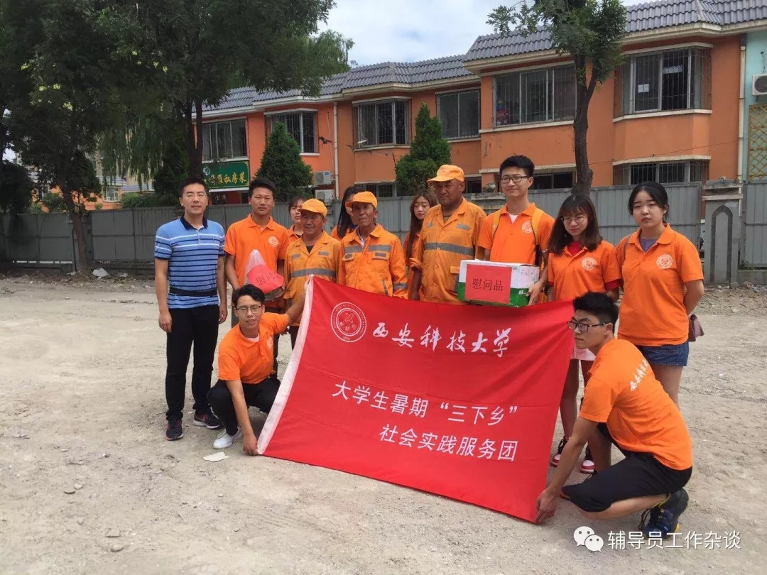 西安科技大学材料学院“乡村振兴视域下陕甘宁革命老区的红色文化传播及乡村治理现代化实践调研队”在18级辅导员李浩的带领下到兴庆区环卫工人休息室慰问学习辛苦工作生活的环卫工人。