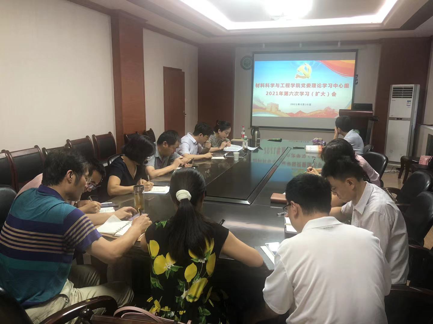 6月30日上午,材料学院党委在雁塔校区学院会议室召开理论学习中心组(扩大)会。学院党政领导班子成员、各党支部书记、系主任和科级干部参加了会议。