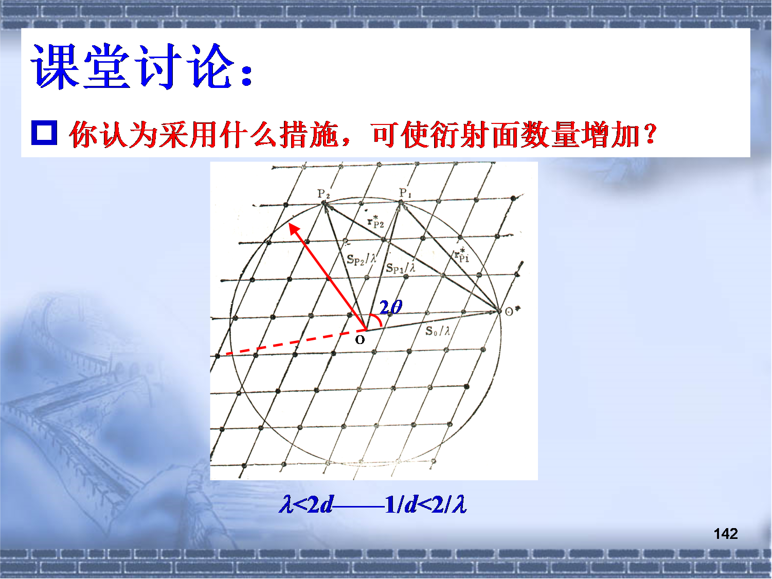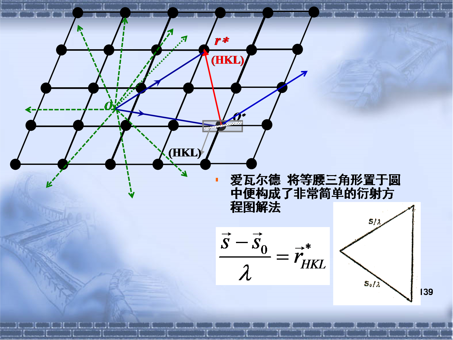 通过讲述劳厄方程求解的复杂性,引入两种解决方法:厄瓦尔德图解法和布拉格方程。通过几何关系讲述,引入厄瓦尔德图解法的具体步骤。