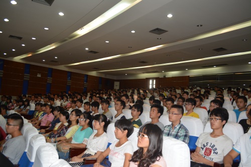 9月5日下午,材料学院2014级迎新暨专业介绍大会在图书馆二楼国际报告厅举行。材料学院领导班子、有副高级职称老师、各系负责人等19名老师代表和291名新生参加了大会。会上,材料学院院长杜慧玲老师讲了话,她对2014级新生的到来表示热烈的欢迎,对学生和家长能够选择材料学院表示感谢,并从学会做人、学会做事、学会做学问、学会与人相处等几个方面对2014级新生提出了殷切希望,老生代表和新生代表分别作了发言,随后各专业的负责老师分专业为新生同学们做了专业介绍。