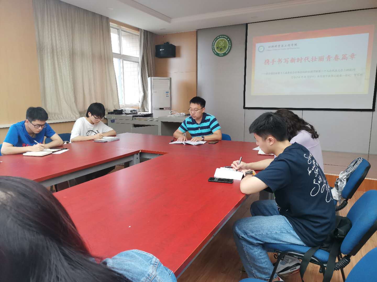 同学们认真学习,积极讨论。学院新一届的学生干部结合各自在学业上的规划和团学干部的工作职责,分享学习体会和心得感悟,大家深切感受到以习近平同志为核心的党中央对广大青年的亲切关怀,极大地振奋了大家的热情,鼓舞着大家的精神,进一步夯实了广大青年坚定跟党走、奋进新时代的决心和信念。大家从讲话中也深刻认识到自己肩负的重大责任和光荣使命,希望能够在今后的学习、工作中,志存高远、脚踏实地,勇于创新创造,矢志艰苦奋斗。