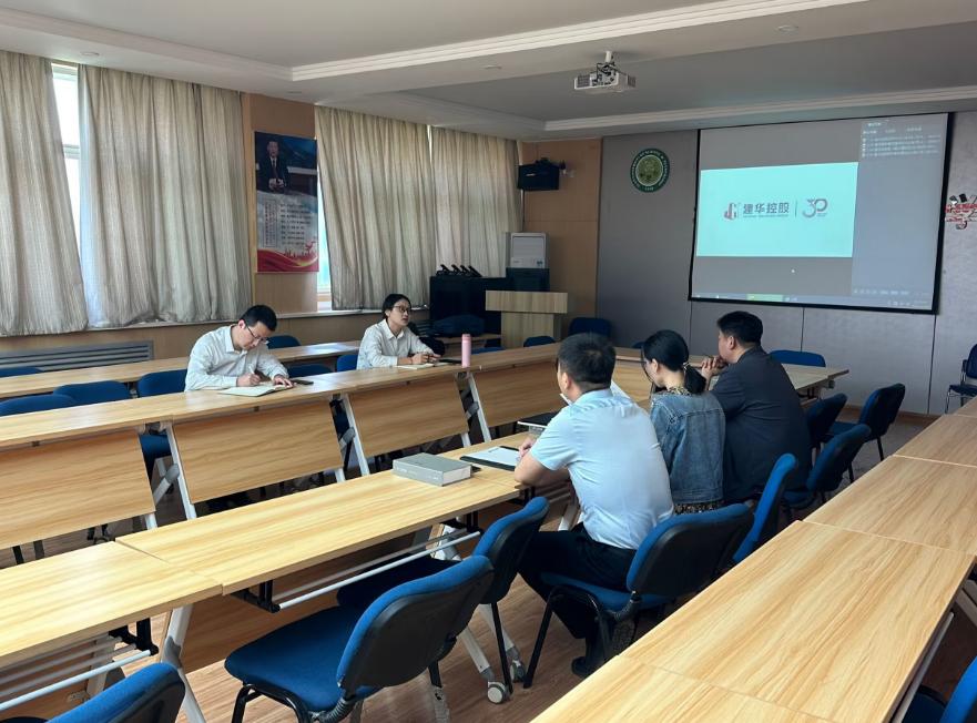 李卫鹏对段飘一行表示欢迎,并简要介绍了学院学生情况。段飘介绍了建华控股发展历程、企业定位、经营业务、校招情况等方面情况,并表示会以此次交流会为基础,希望双方能加强互访交流,共同推进人才培养。