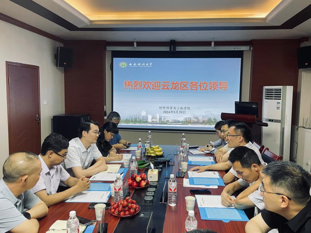 2024年5月29日上午,徐州市云龙区政府党组成员、区科技镇长团团长卢长彤,中共云龙区委组织部常务副部长王以昊等一行五人到访西安科技大学,调研WilliamHill中文官方网站科技、人才和成果转化工作,交流校地合作事宜。交流会在雁塔校区材料学院会议室举行,会议由材料学院副院长杨庆浩主持,科技处副处长崔峰、就业中心主任周探伟和材料学院党委副书记杨宝华、刘向春教授、彭龙贵教授、刘二勇副教授、宿文燕副教授及相关领域研究生参加交流。