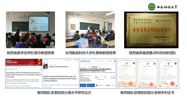 师资队伍:本专业已形成一支教学与科研实力雄厚、学历职称与年龄结构合理的高水平师资队伍。现有专任教师22人,其中教授1人,兼职教授1人,副教授8人,教育部新世纪优秀人才支持计划入选者1人,国家香江学者计划入选者1人。专任教师组建了陕西省新能源材料重点科技创新团队、陕西省秦创原“科学家+工程师”科技创新团队,曾荣获全国煤炭行业教育教学成果一等奖1项,陕西省教育教学成果二等奖2项,承担建设省级精品课程2门,主持省级教学改革项目3项,师资队伍博士化率达100%,海外留学率超过70%,青年教师占比超过75%。