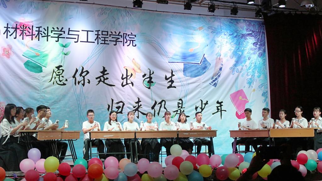 6月21日晚,材料学院在临潼校区第二俱乐部举办2018届毕业生欢送晚会。晚会通过“忆昔怀念、成长励志、感恩祝福”三个篇章,带领毕业生们重温了充实、精彩的校园时光。为毕业生们献上了一场精彩绝伦的视听盛宴,同时对母校即将迎来的60华诞献上诚挚祝福。