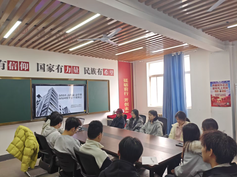 为总结上学期学习工作情况,明确新学期工作方向,进一步强化班、团组织建设,统筹推进学生学习生活等各项工作有序开展。近日,材料学院2024级新学期第一次班团例会在一站式学生社区举行。