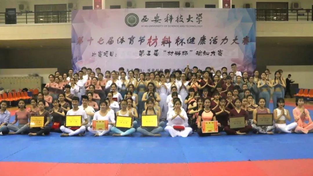 4月22日晚,西安科技大学第十七届体育节“材料杯”第三届瑜伽比赛于临潼校区骊山校园体育馆圆满落幕,本次赛事包括来自9个学院的瑜伽队,共有“团体赛、单人赛、双人赛”等三个项目。出席本次比赛的嘉宾有体育部党委书记吕宏艳,体育部主任陈俊杰,材料学院党委副书记马婧智闻,副院长朱明等。本次比赛评委特邀到岳海侠、李东颖、刘伟、王晓丽、张艳青、郑瑞娜、刘婷婷等。