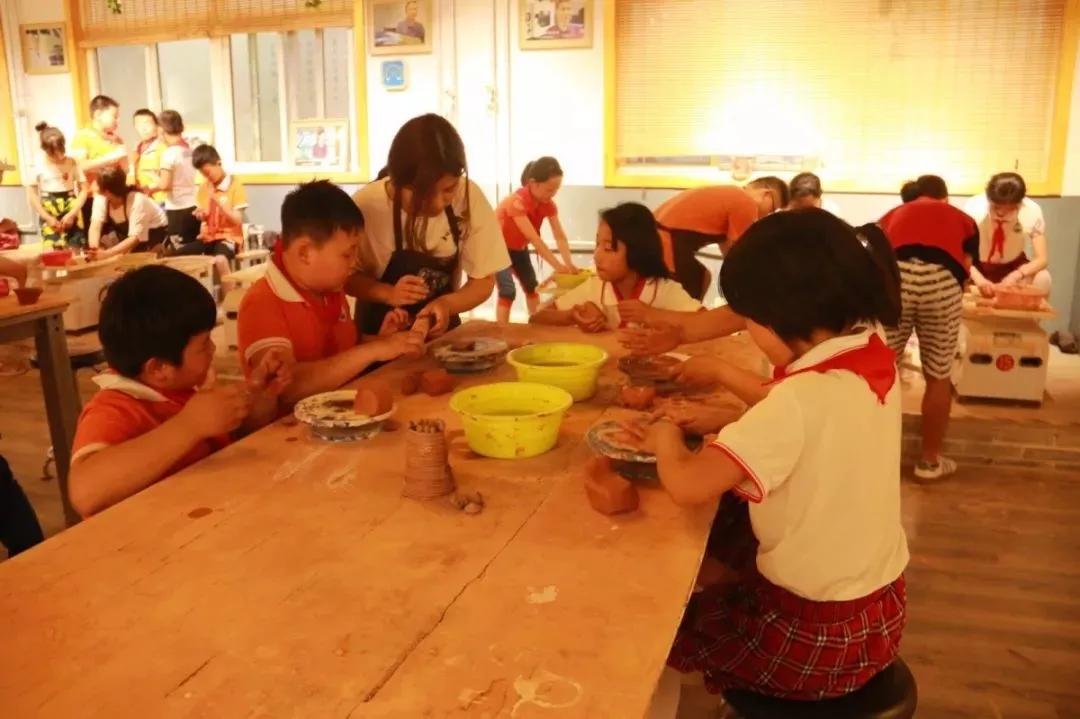最后他们参观了材料学院陶吧,并自己动手实践。陶吧是材料学院的大学生创新创业基地,由学生自己完成陶艺等多重工艺。颇具特色的陶艺文化和艺术气息吸引了小学生们的注意力,认真听完讲解人员的讲解后,大家争先恐后地想要试一试。在陶吧技术人员的帮助下,小学生们也都完成了自己的作品。大家在欢声笑语中结束了这次有意义的六一儿童节的活动。