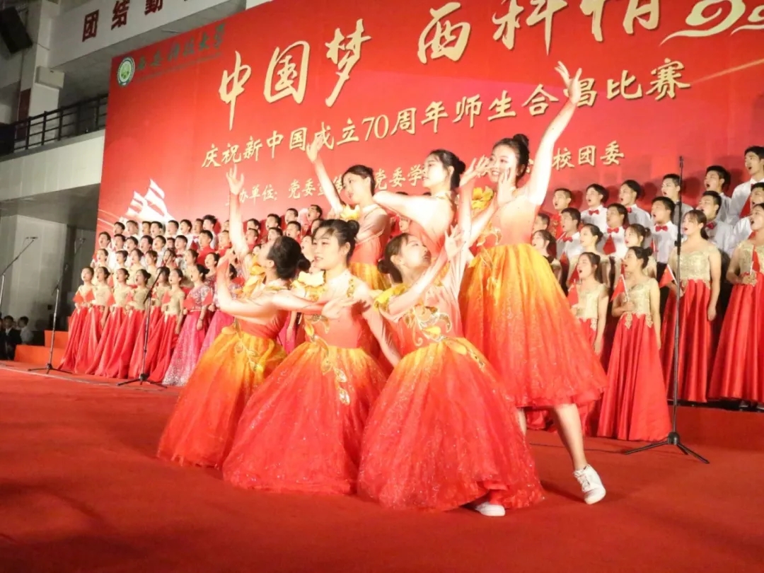 为歌颂新中国成立70年来的奋斗历程和辉煌成就,西安科技大学于9月29日晚在临潼校区骊山校园体育馆举办了歌颂新中国成立70周年师生合唱比赛。WilliamHill中文官方网站师生用嘹亮的歌声、火热的激情向祖国献礼。本次比赛表演曲目为《我和我的祖国》和《西安科技大学之歌》。