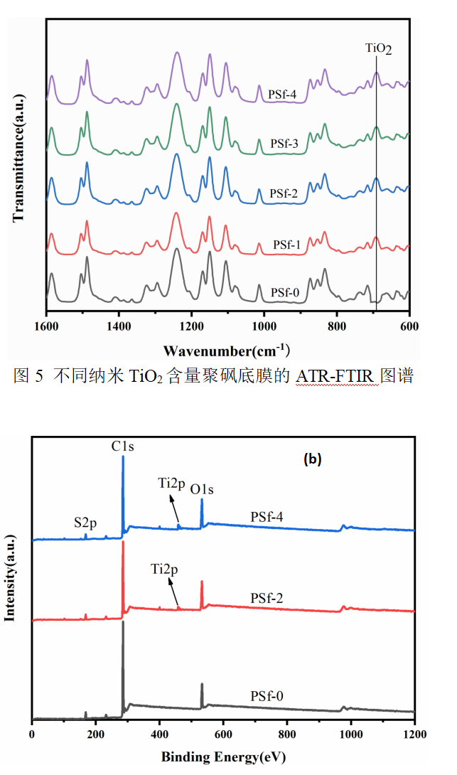 (1)根据红外、XPS和SEM测试结果,关联分析TiO2和多巴胺对聚酰胺的改性处理;
